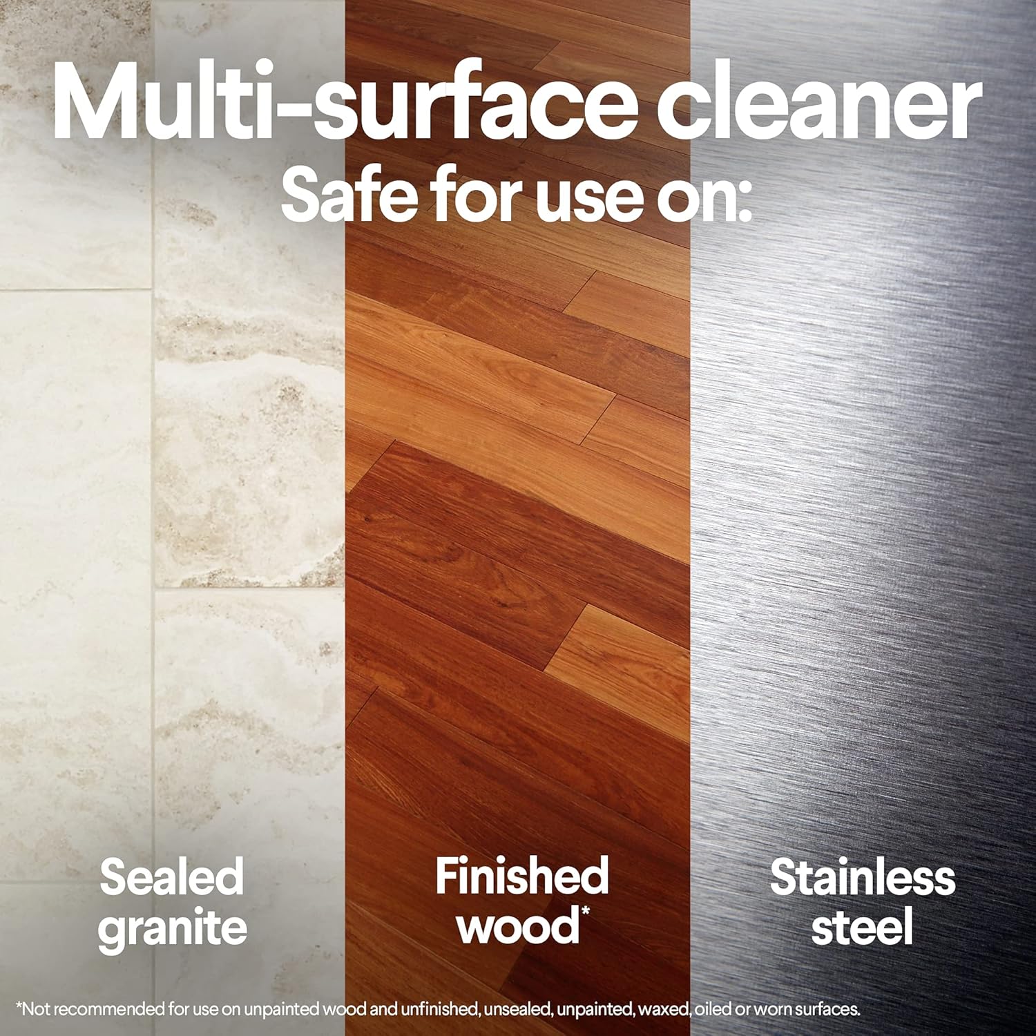 - Multi-surface cleaner: germs and messes occur on more than kitchen counters and bathroom surfaces - Conveniently tackle any tough surface including finished wood sealed granite and stainless steel