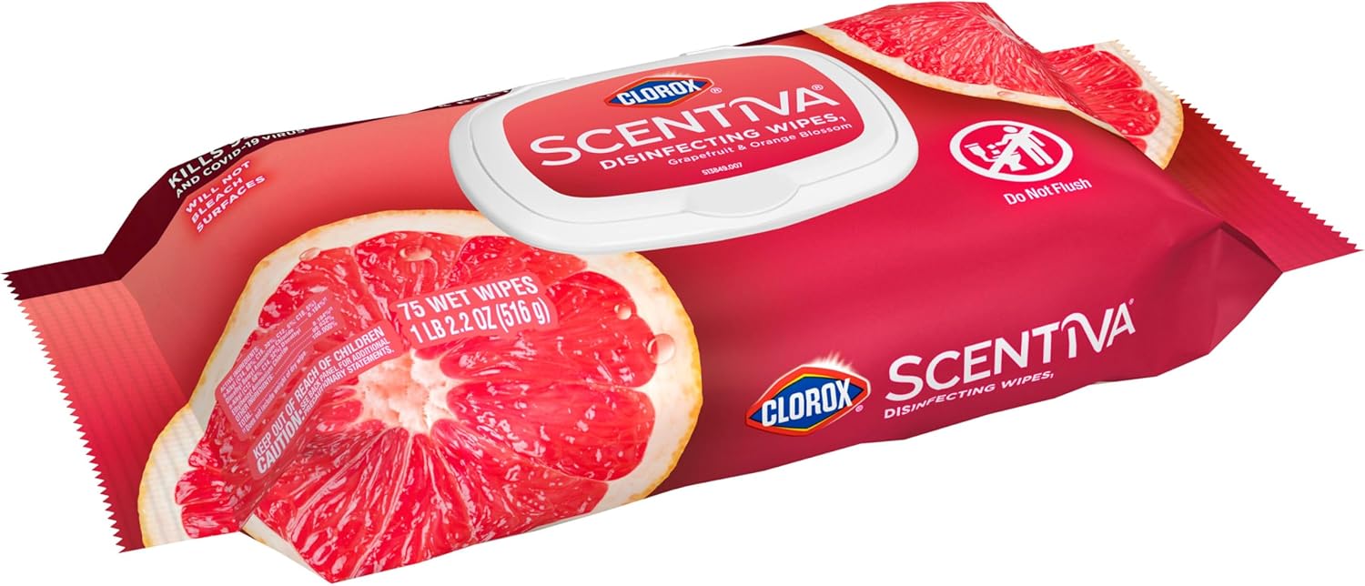Clorox Scentiva Disinfecting Wipes. Grapefruit and Orange Blossom. 75 Ct.. Pack of 3 (Pack May vary)