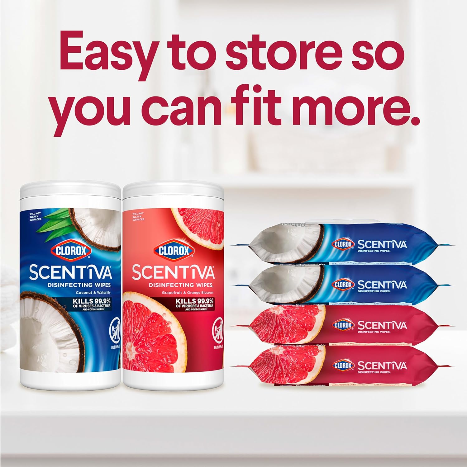 - DISINFECTS AND CLEANS: Kills 99.9% of viruses and bacteria (1). including COVID 19 (1) Virus. in 15 seconds with the cleaning power of Clorox and the fragrance of Scentiva